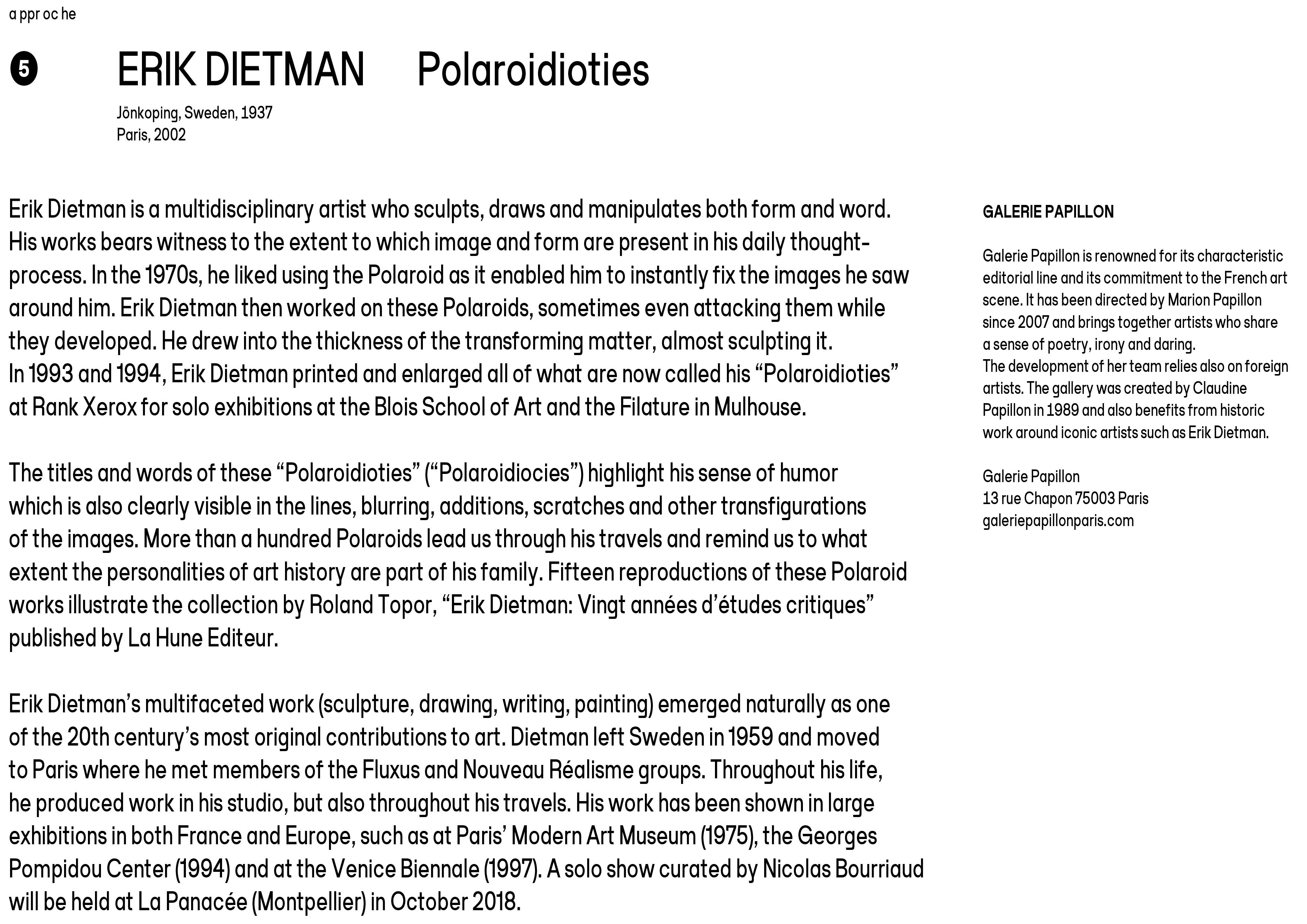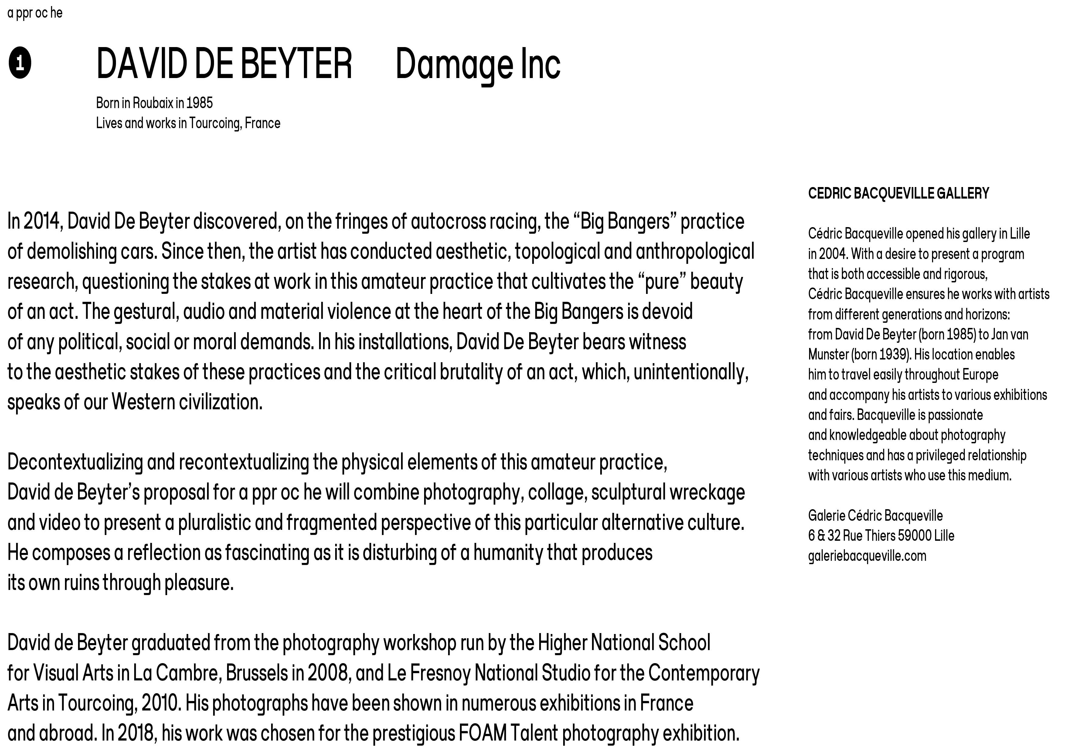 with an increase in non-French galleries as well as a corpus of international artists (7 French artists out of 15 in total). The a ppr oc he sector has also been set up.