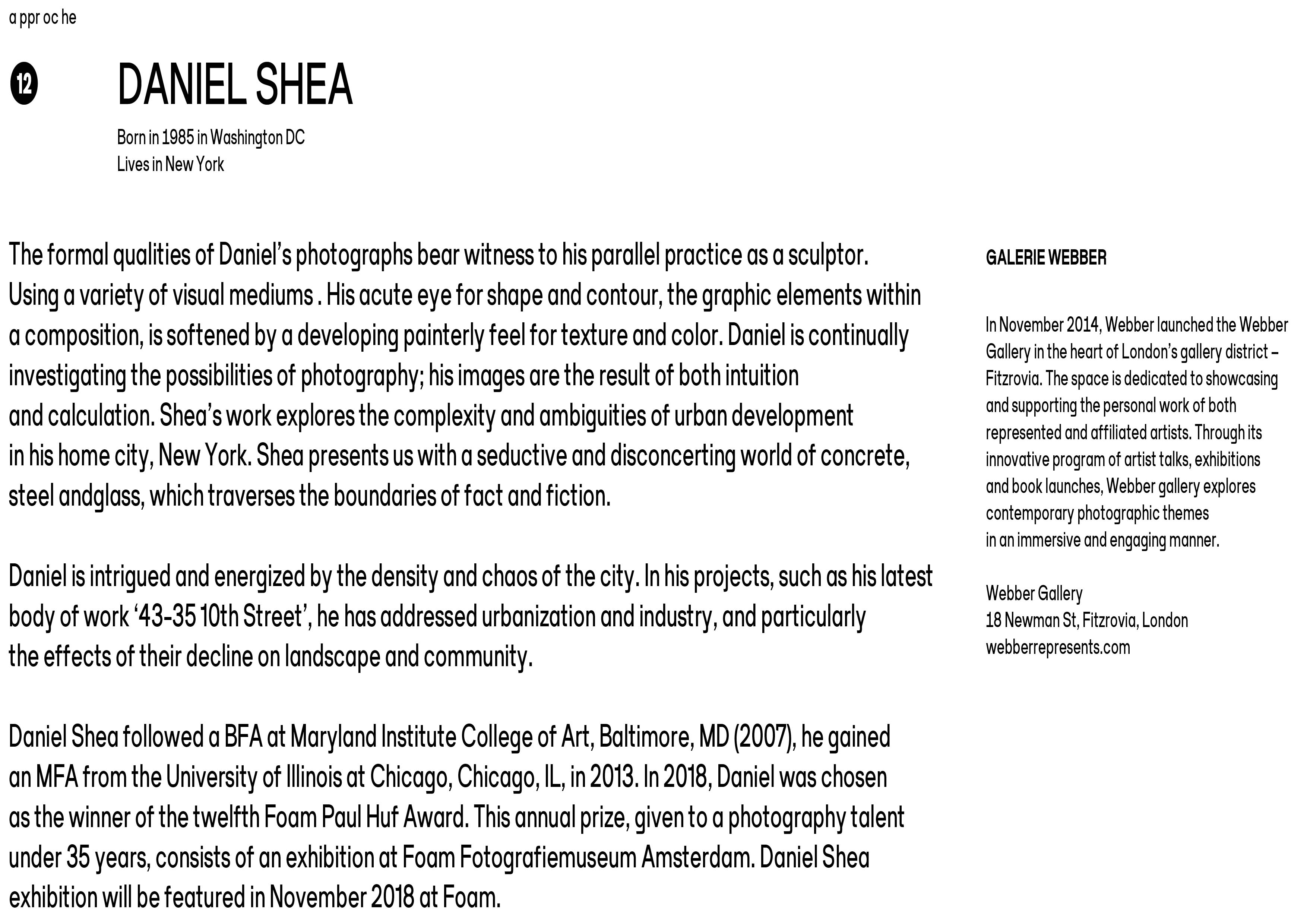 a ppr oc he in November of this year. They are of different nationalities, generations and artistic education, but share nonetheless the same quest: to explore the photographic medium.