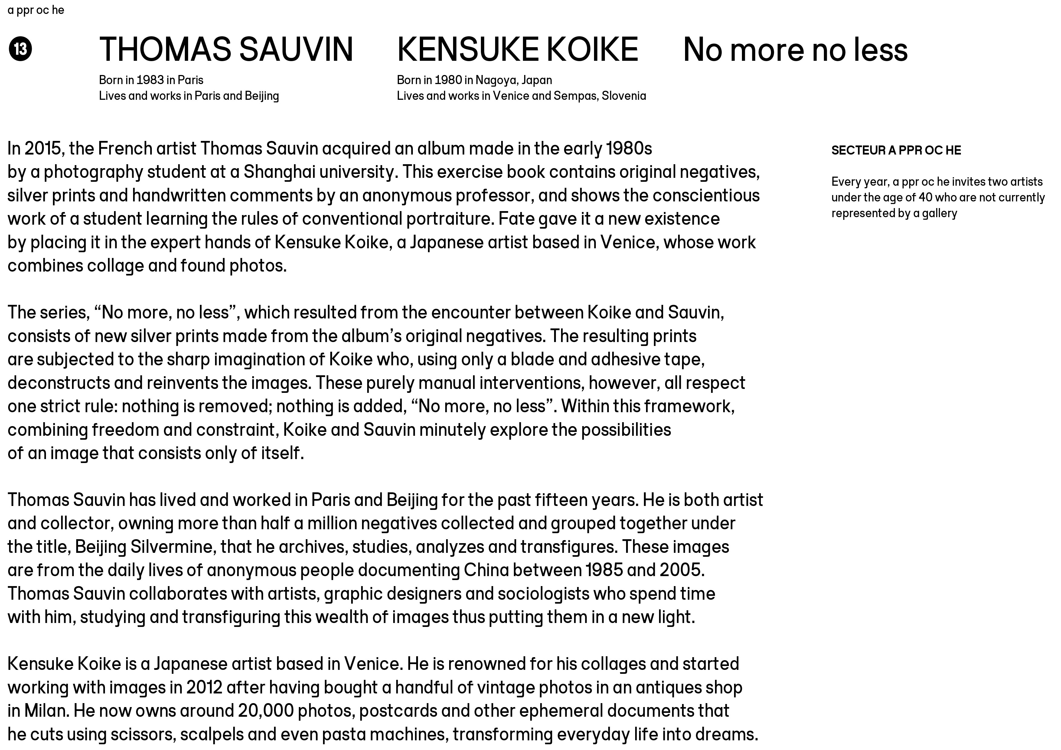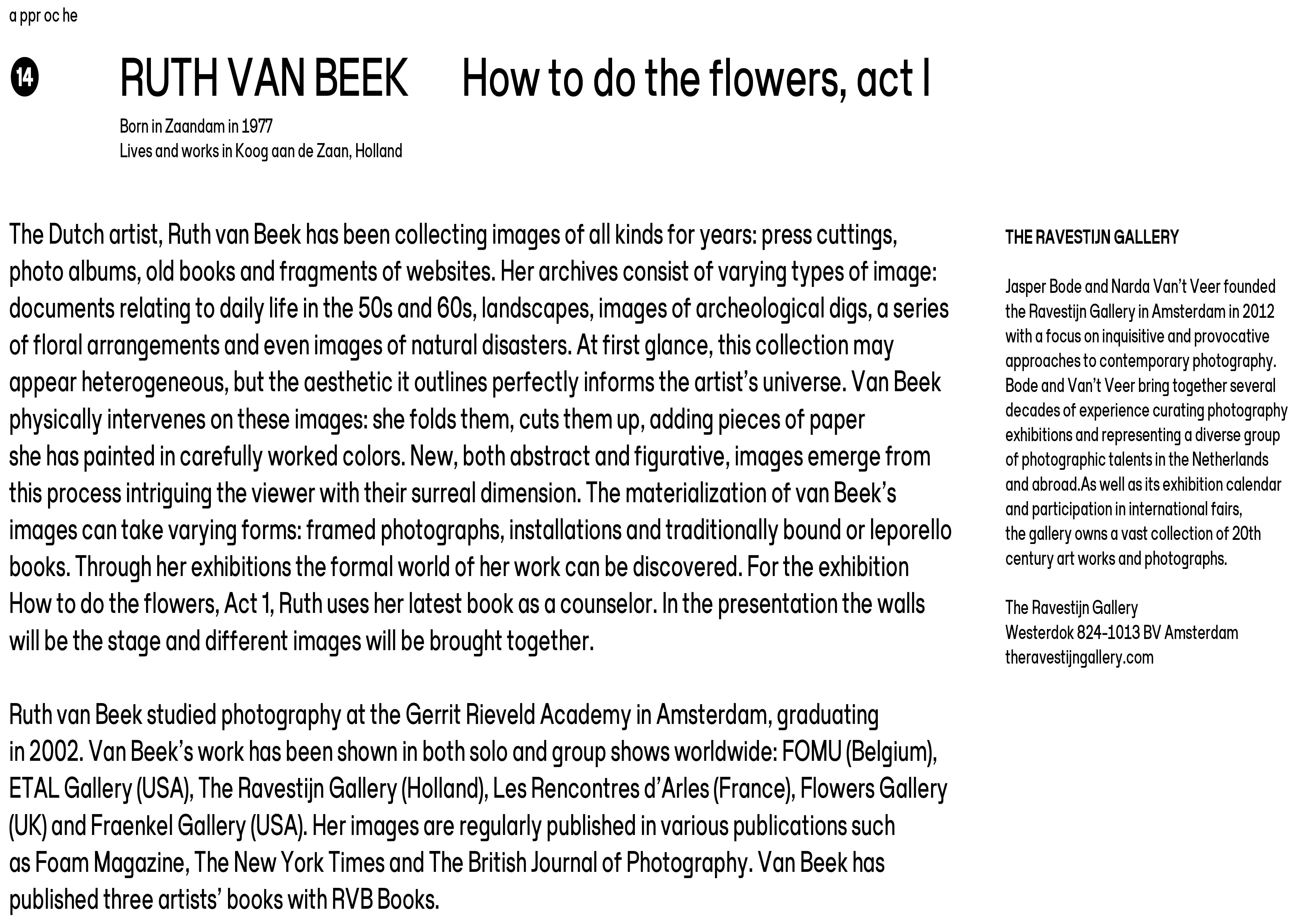 a ppr oc he is a salon devoted to experimental photography practices. It is designed as an exhibition and will present,