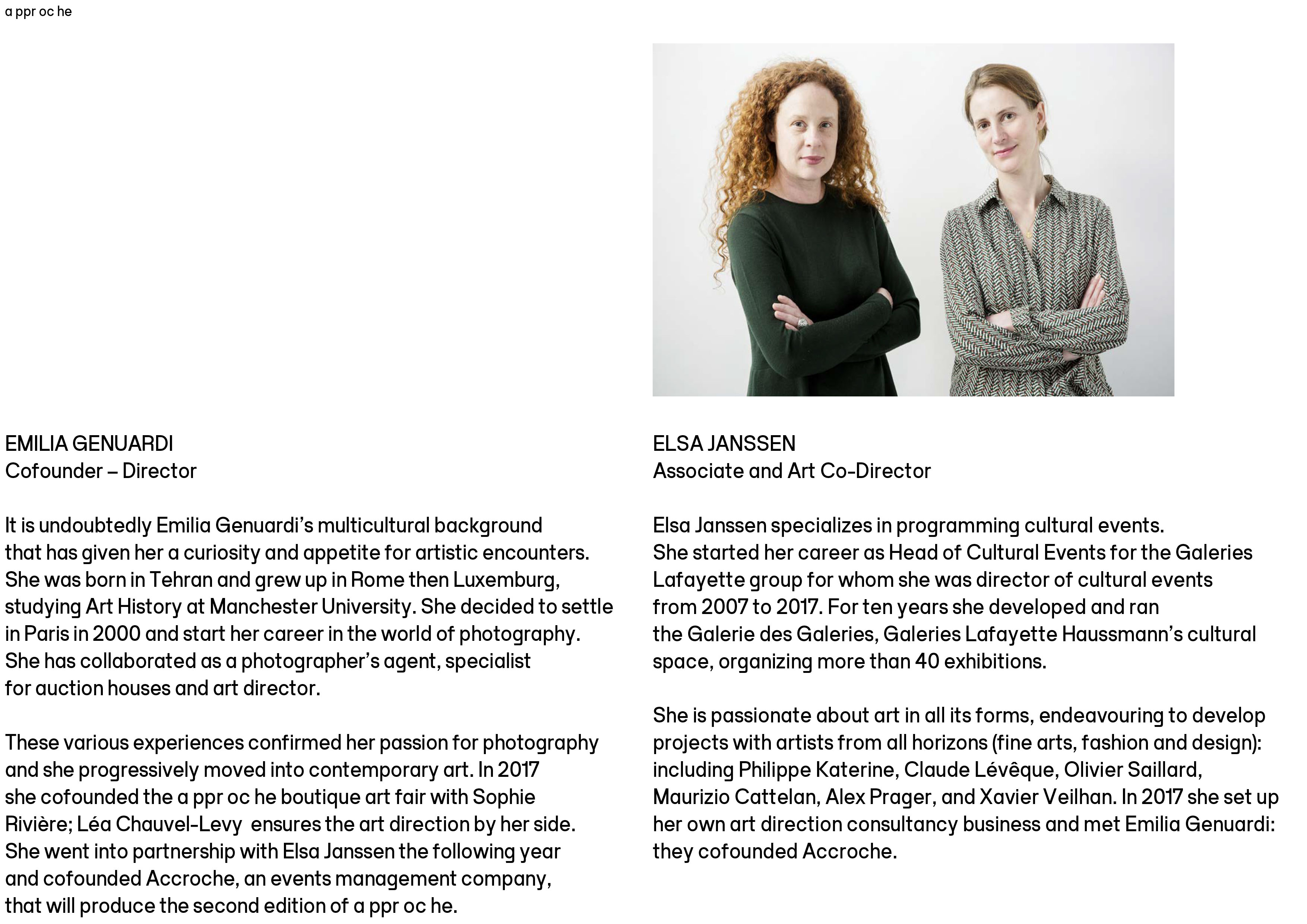 a ppr oc he was cofounded by Emilia Genuardi and Sophie Rivière