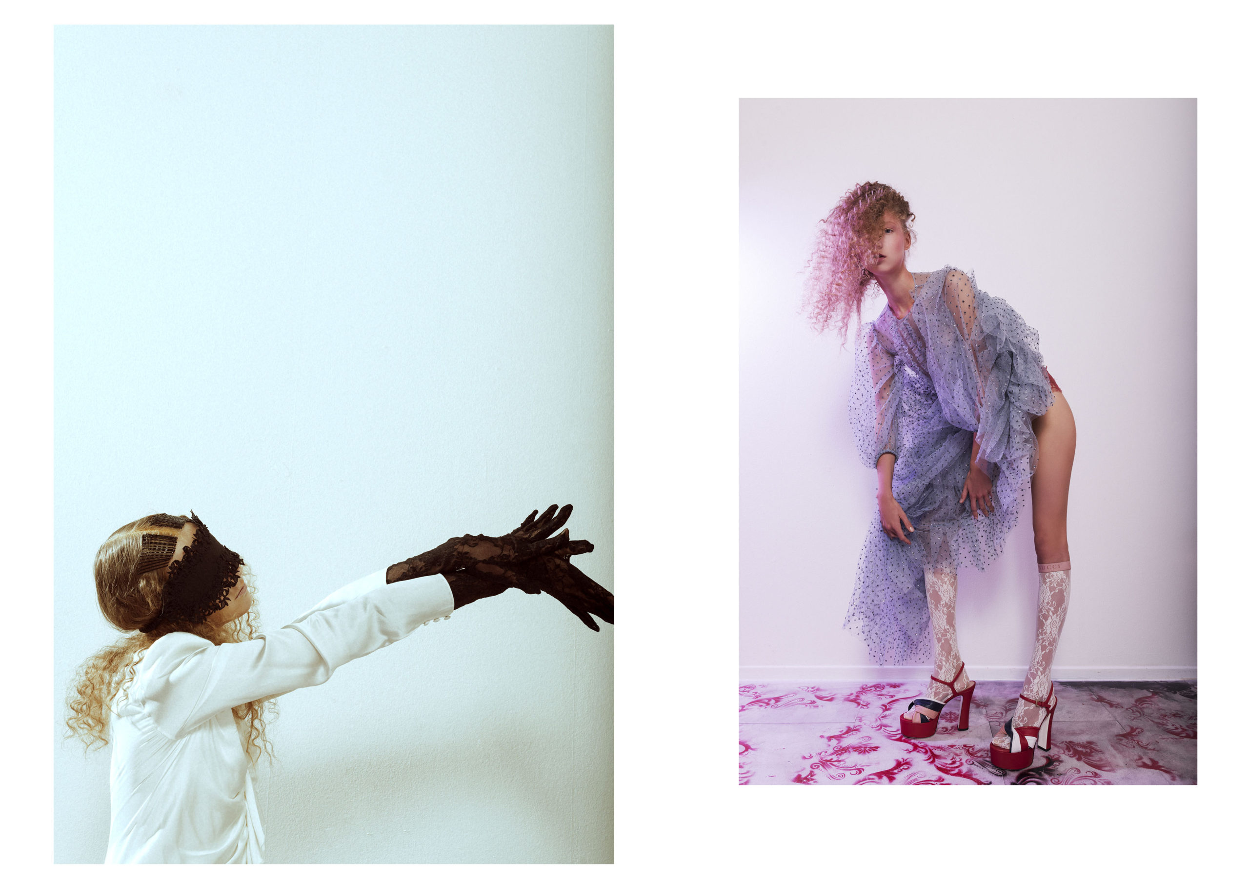 r- Dress ERMANNO SCERVINO, Mask LA PERLA, Gloves GUCCI