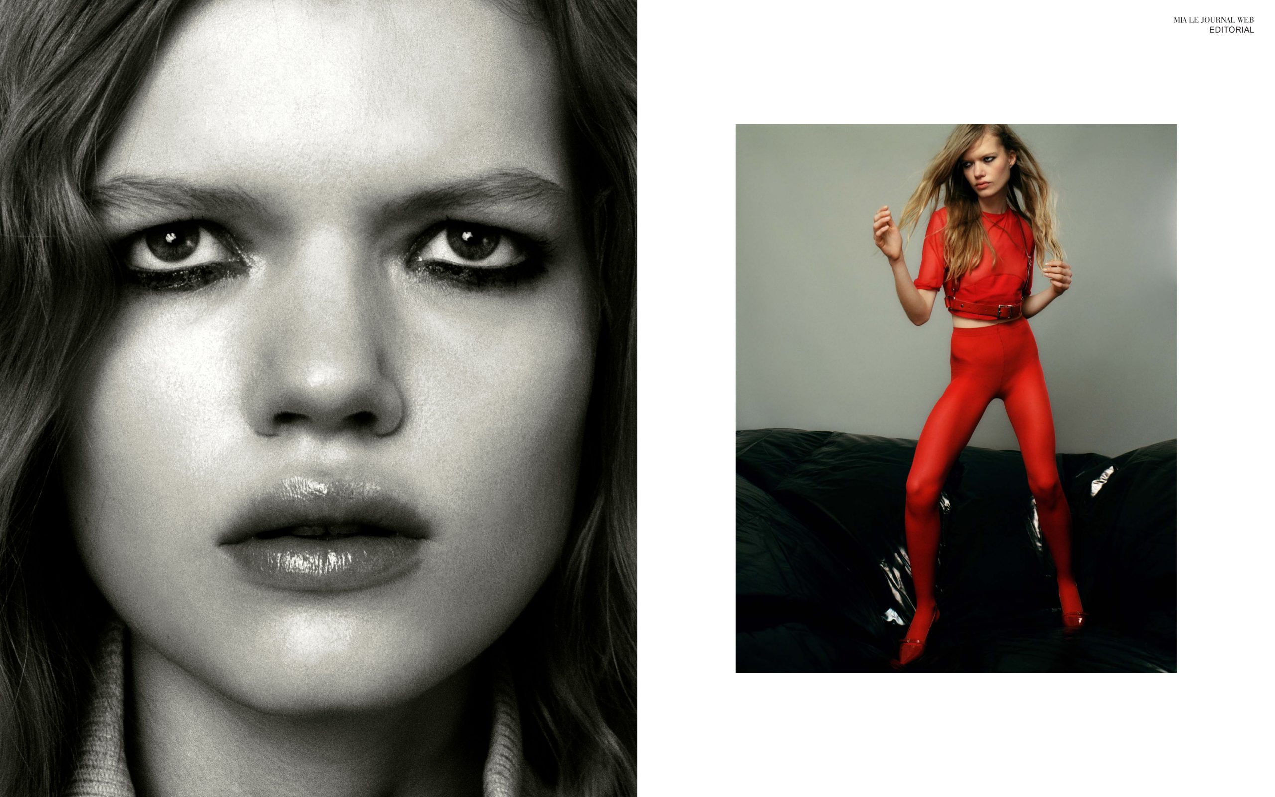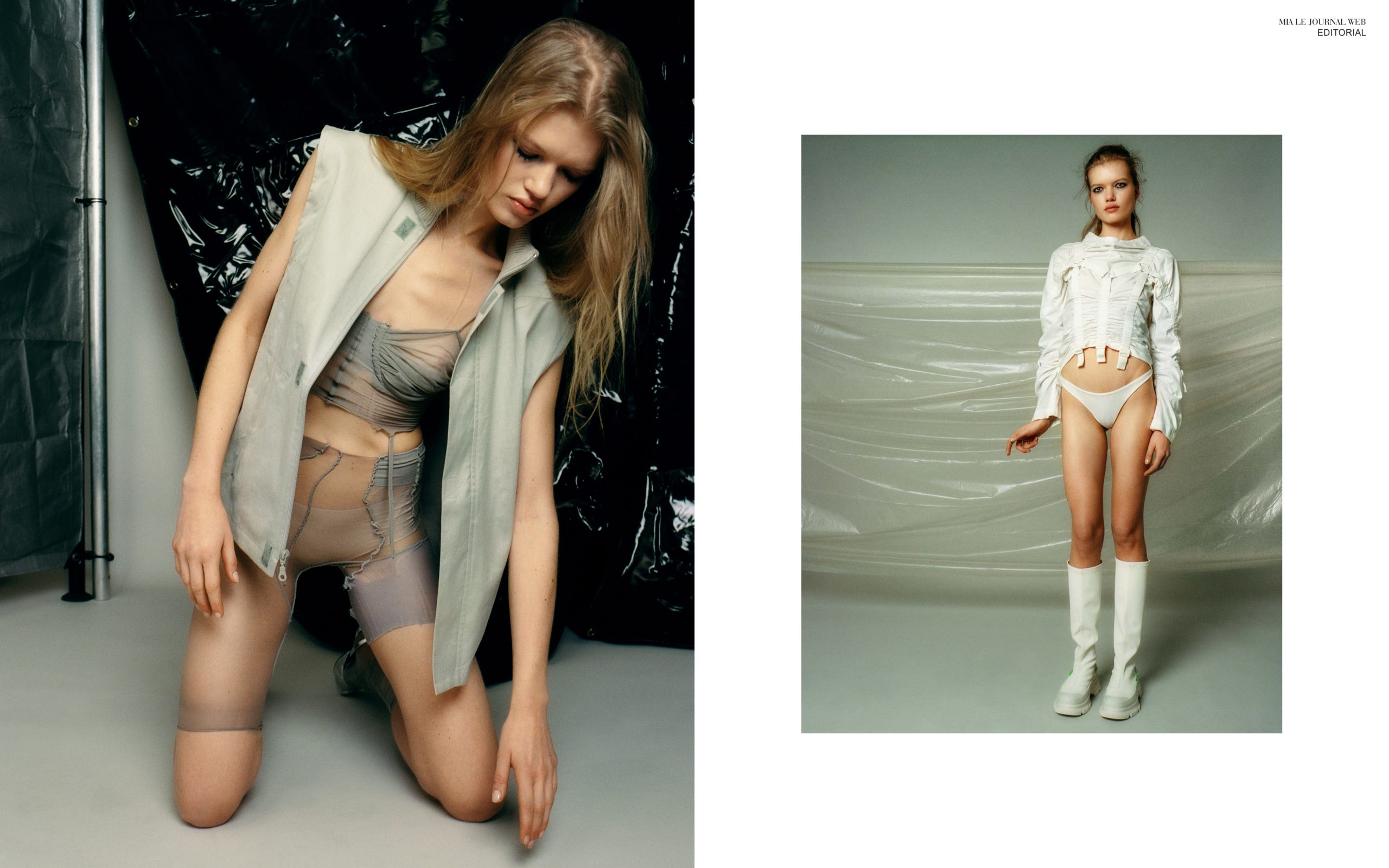 right – Top ASKIN, harness ZANA BAYNE, tights STYLIST OWN, shoes SAISON 1865 (PRINTEMPS)