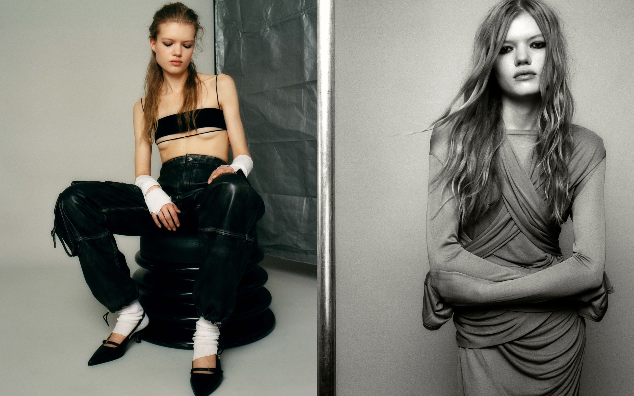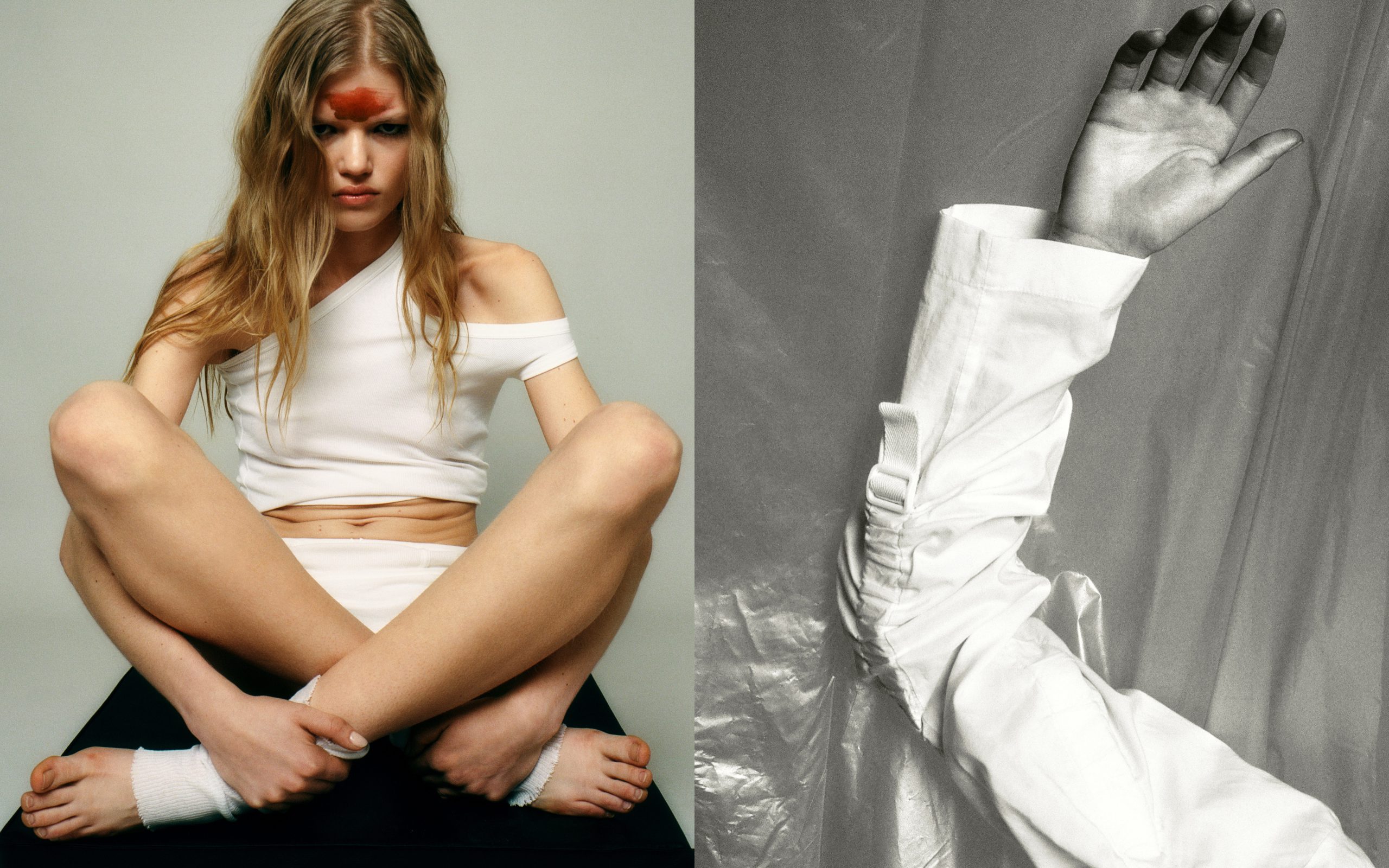 left – Top THEUNISSEN, gloves HELMUT LANG ARCHIVE (PYRN ARCHIVES),