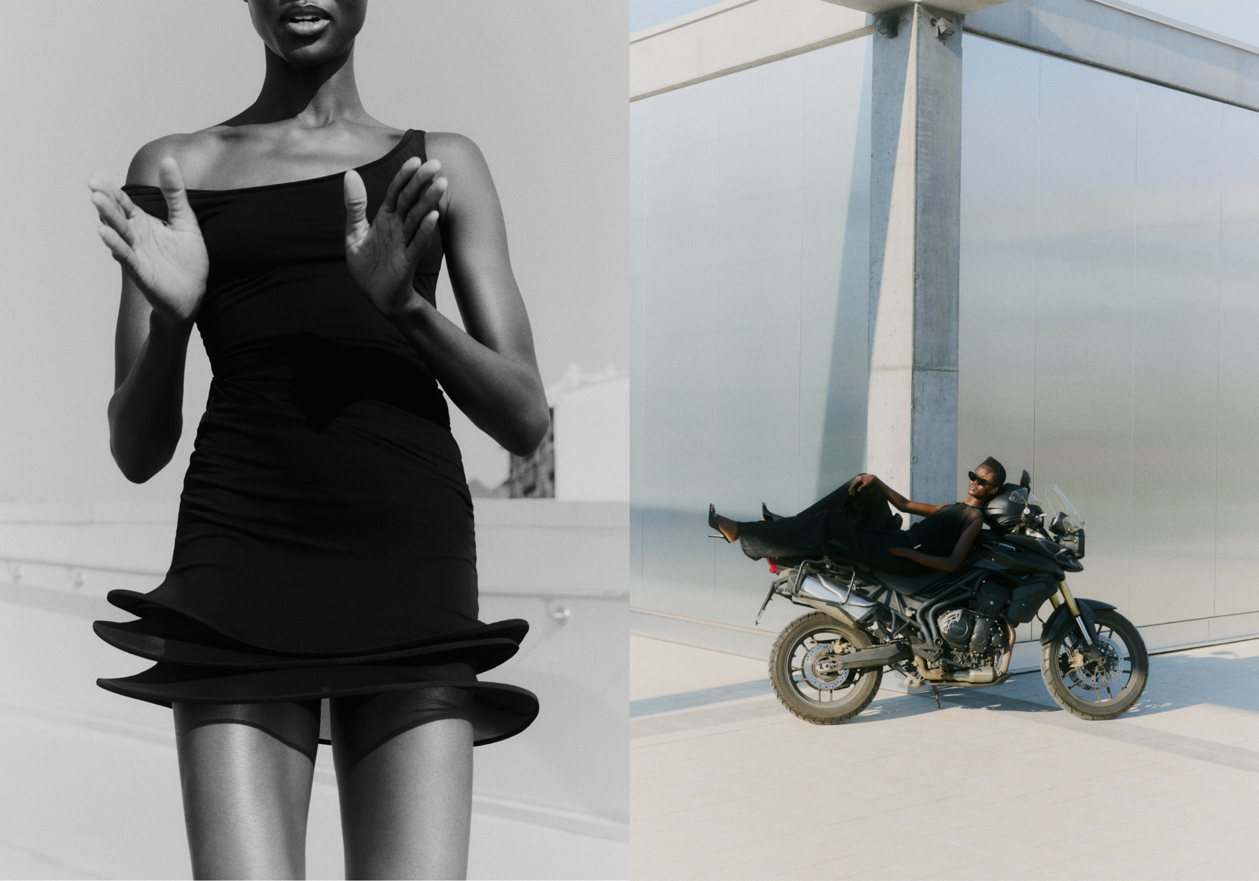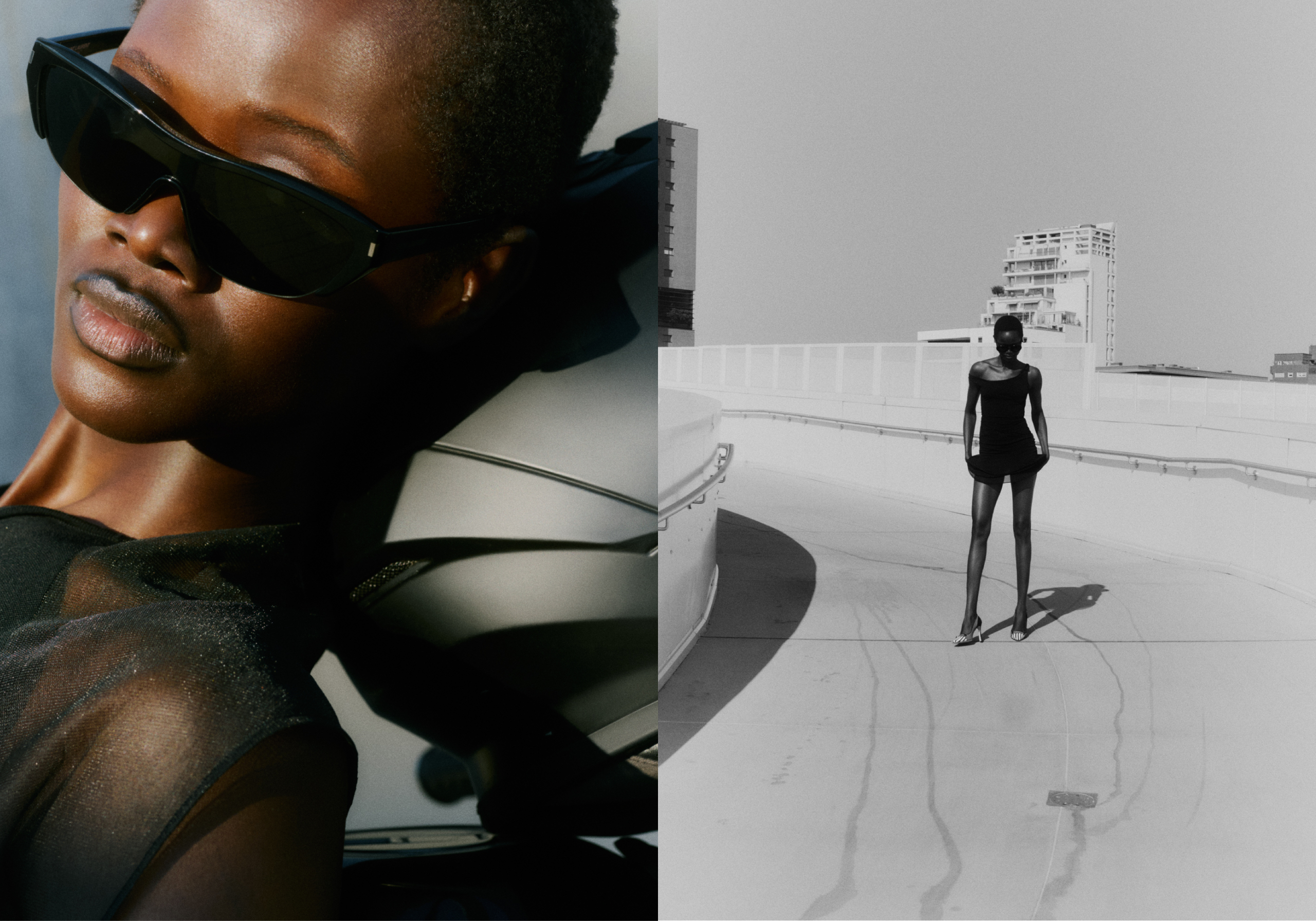 right – Dress ARCHIVIO LOIACONO, ear cuffs MOI-MÊME, sunglasses KALEOS, shoes MANOLO BLAHNIK.