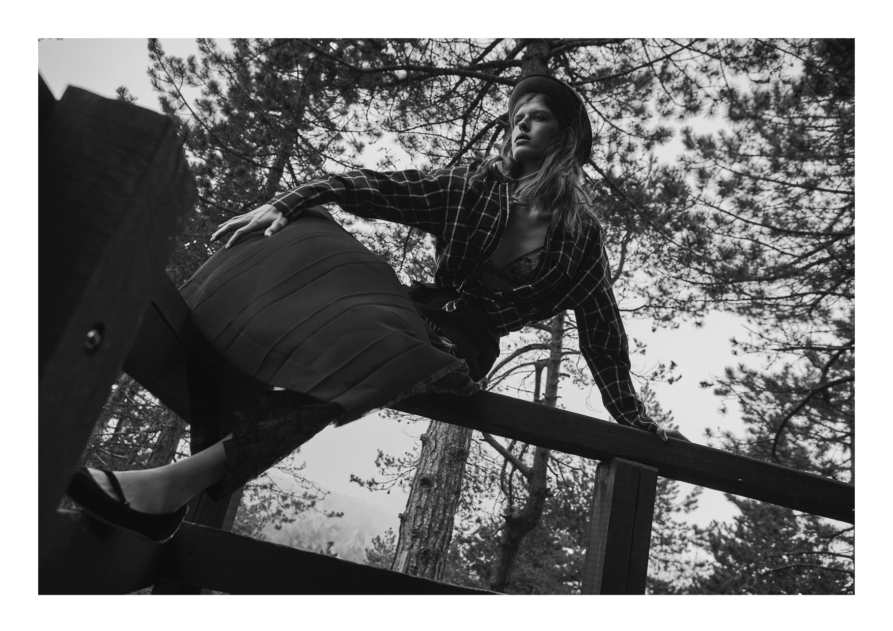 Shirt Hermès, bra La Perla, hat Roberto Lucchi, skirt Antonio Marras, shoes Gianna Meliani