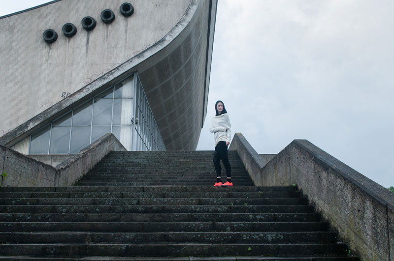 Deux photographes choisissent le méme mannequin, les mêmes vêtements et la photographient dans un studio et à l’exterieur dans la ville de Vilnius…