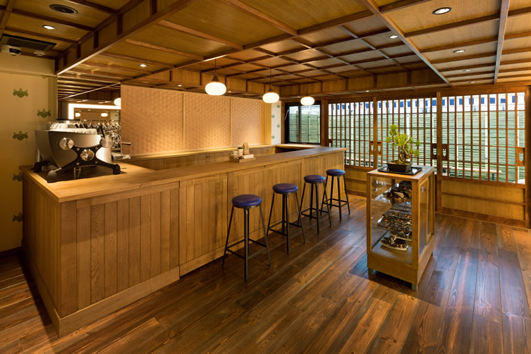 At the heart of Tokyo’s Minato-ku district and next to Maison Kitsuné Boutique, the Café Kitsuné is known as being an oasis of rest and peace in between marathon shopping sessions in the trendy neighborhood. The aesthetic is totally Japanese: sleek wood all over the space and antique printed wallpaper that easily reminds of a traditional teahouse.