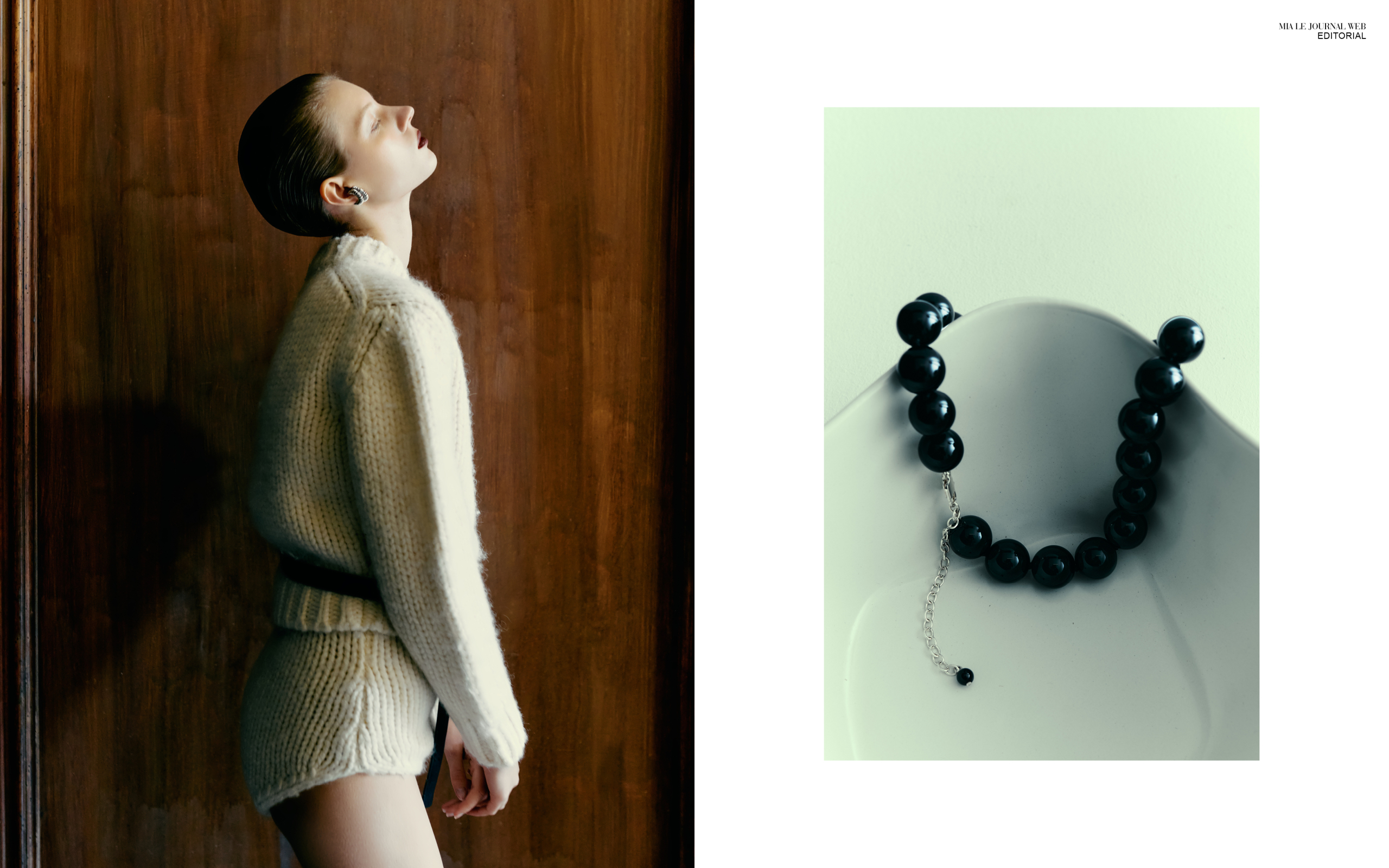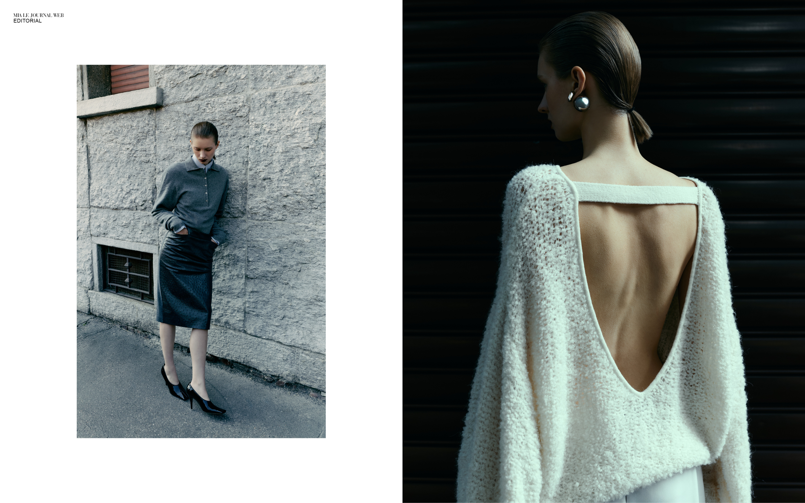 right – Shirt and pants ANDREA ADAMO, earrings ARIANNA FABIANO.