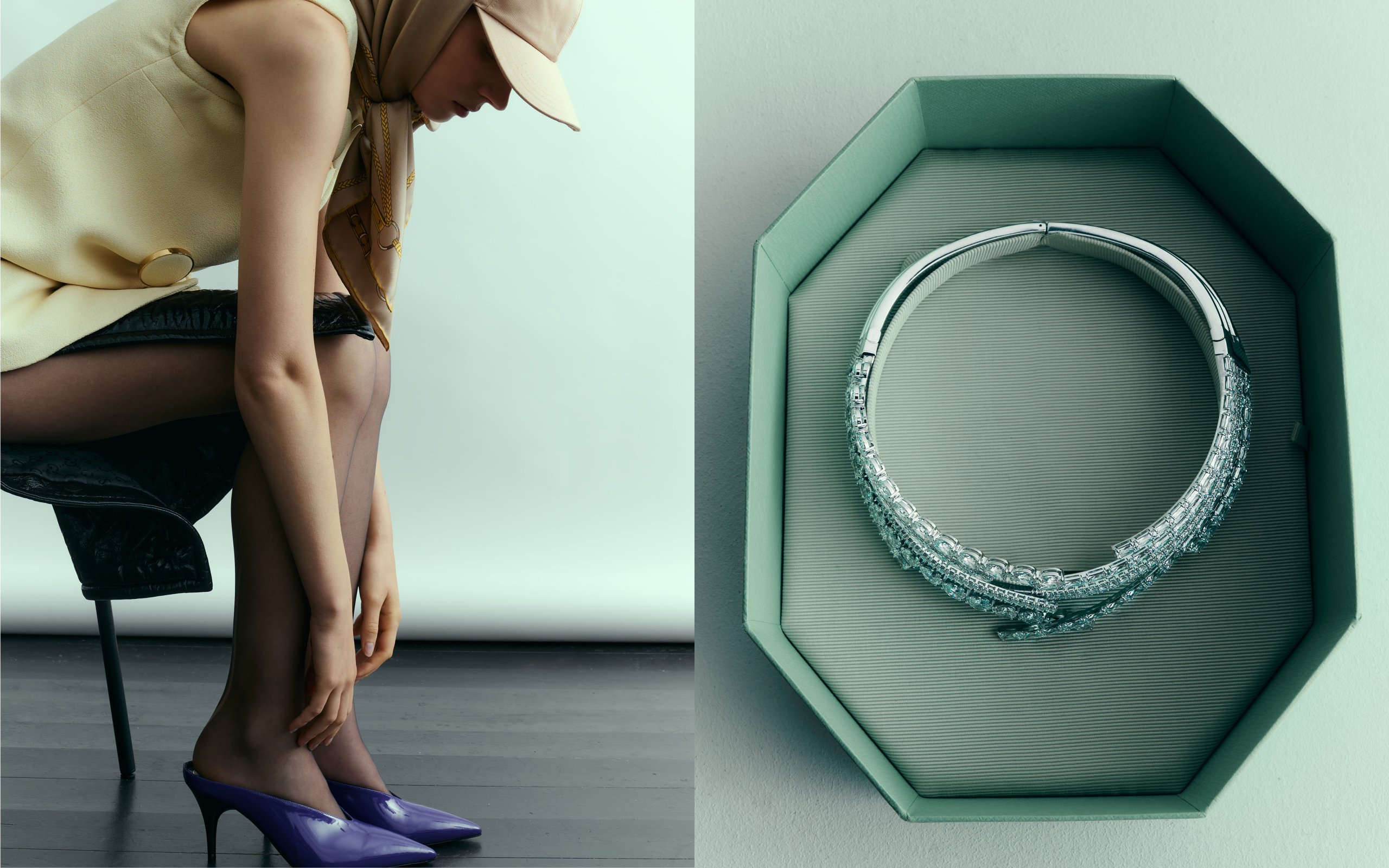 left – Total look STELLA MCCARTNEY, earrings SWAROVSKI.