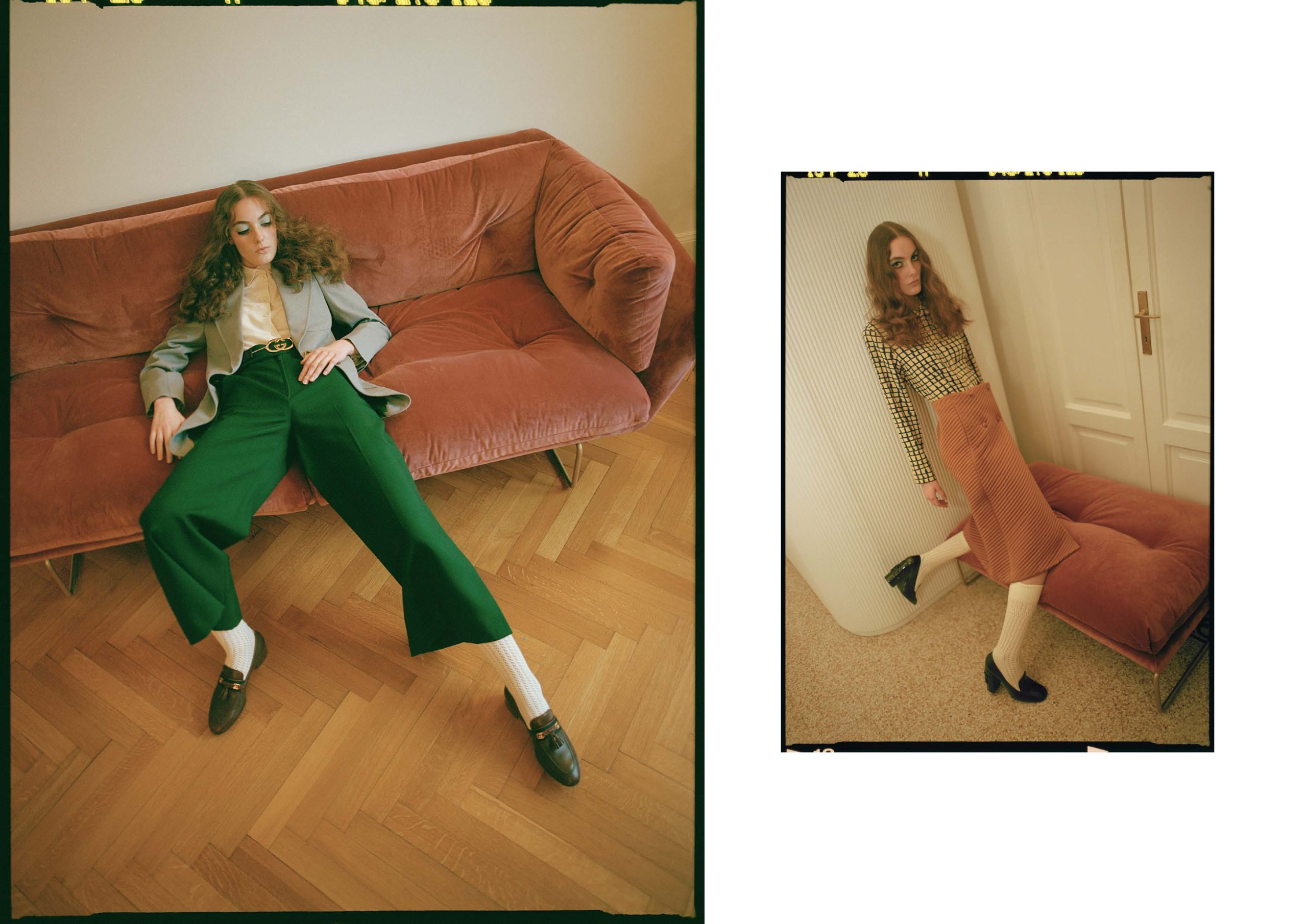 Coat ANNAKIKI , Socks, Foulard and Sunglasses GUCCI , Shoes PHILOSOPHY by LORENZO SERAFINI