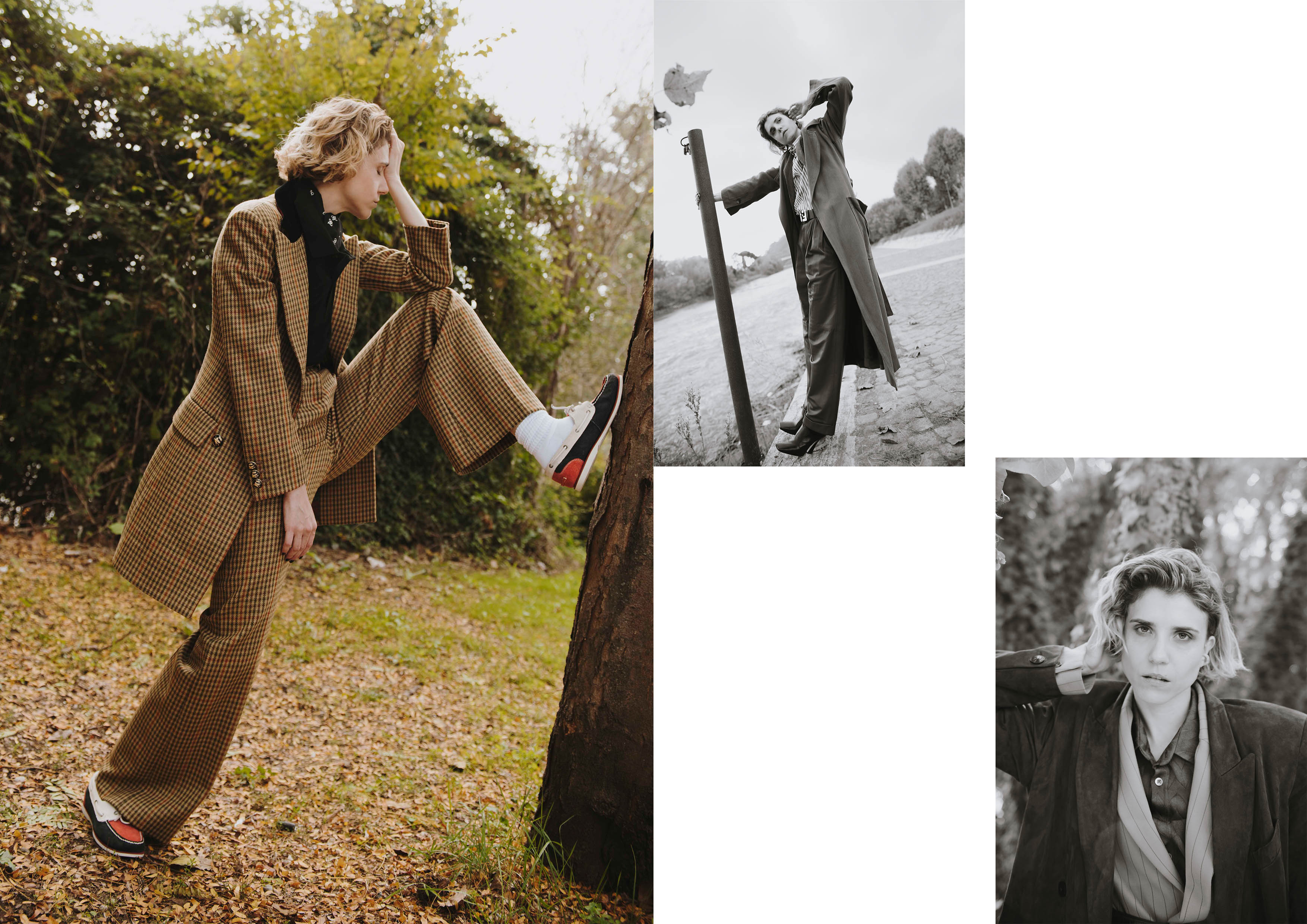 coat Stella McCartney, shirt Etro, sweater Twins Florence, trousers Missoni, shoes Stella McCartney, earrings Fendi