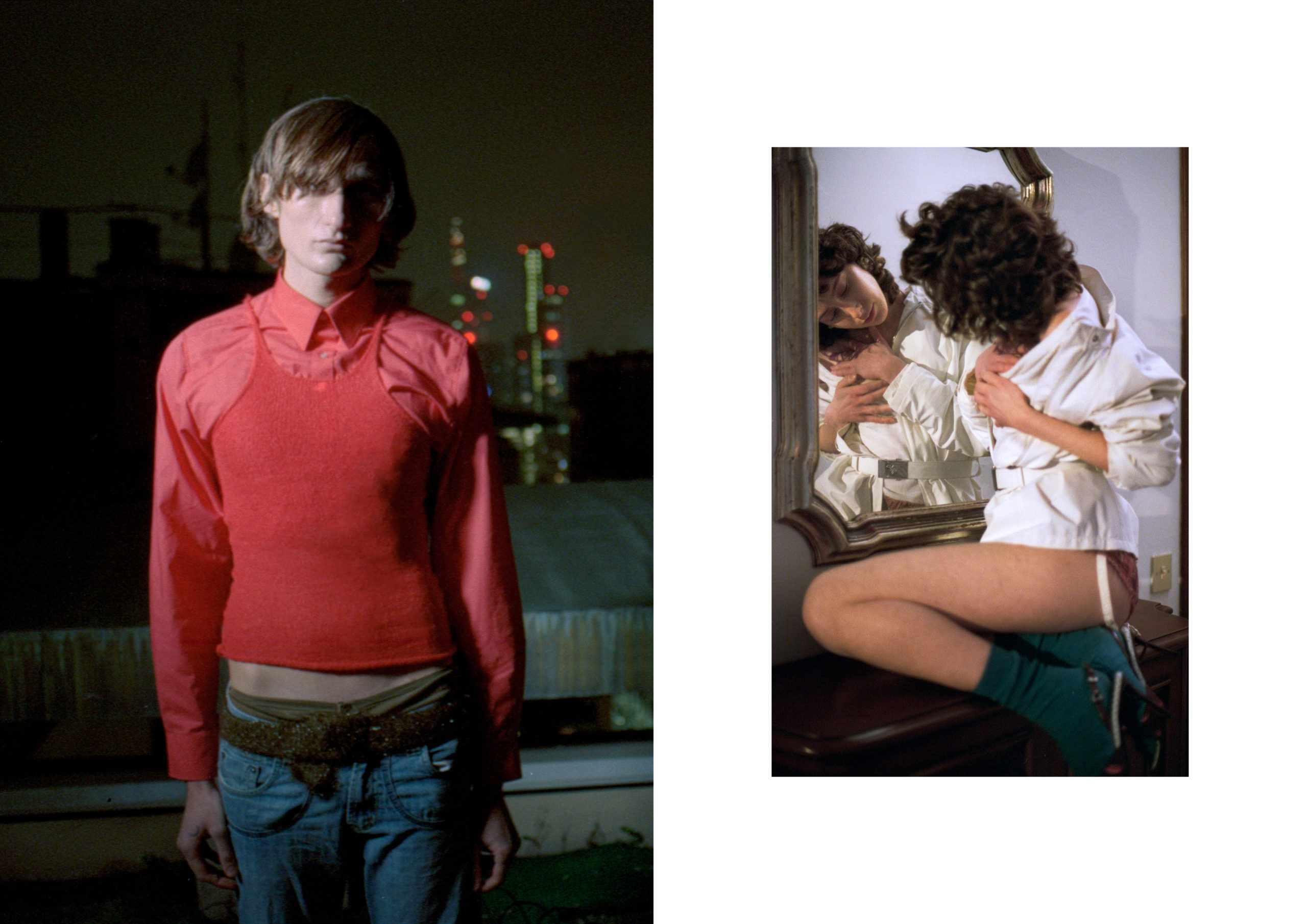 left – shirt LA MAJA, tank top and belt FRANCESCO IACOVINO, underwear GUCCI, jeans EMPORIO ARMANI