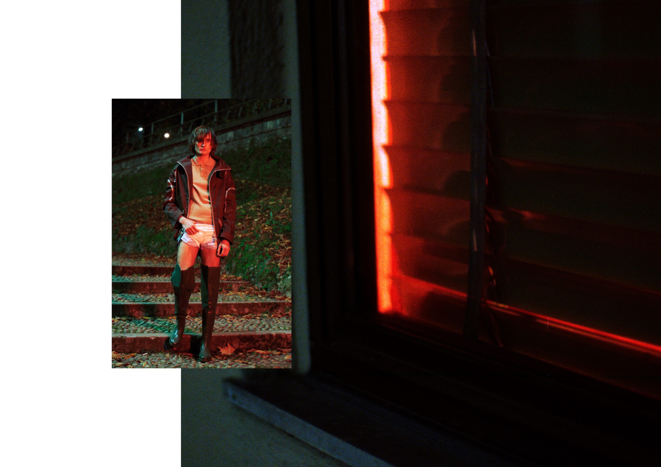 Bomber LAURA FINIZIO, polo ARCHIVIO LOIACONO, underwear COMMESI, short pants ADIDAS, boots CONTESSA MISERIA ARCHIVE