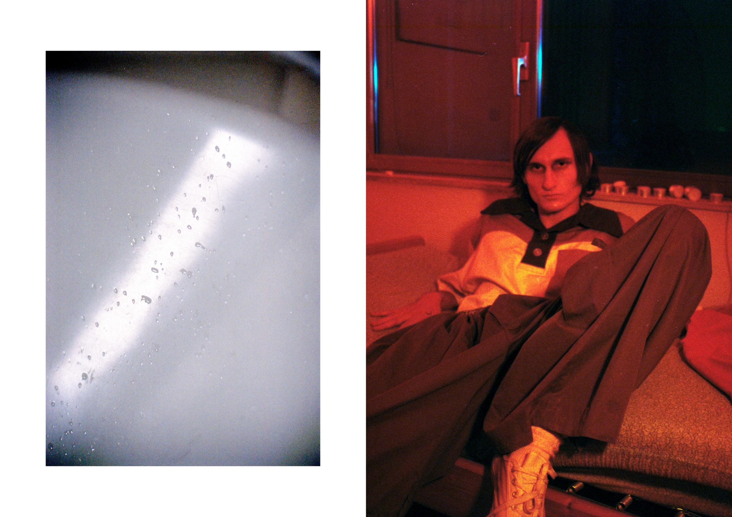 Shirt and pants JUNSE LIU, socks STYLIST OWN, shoes CONTESSA MISERIA ARCHIVE