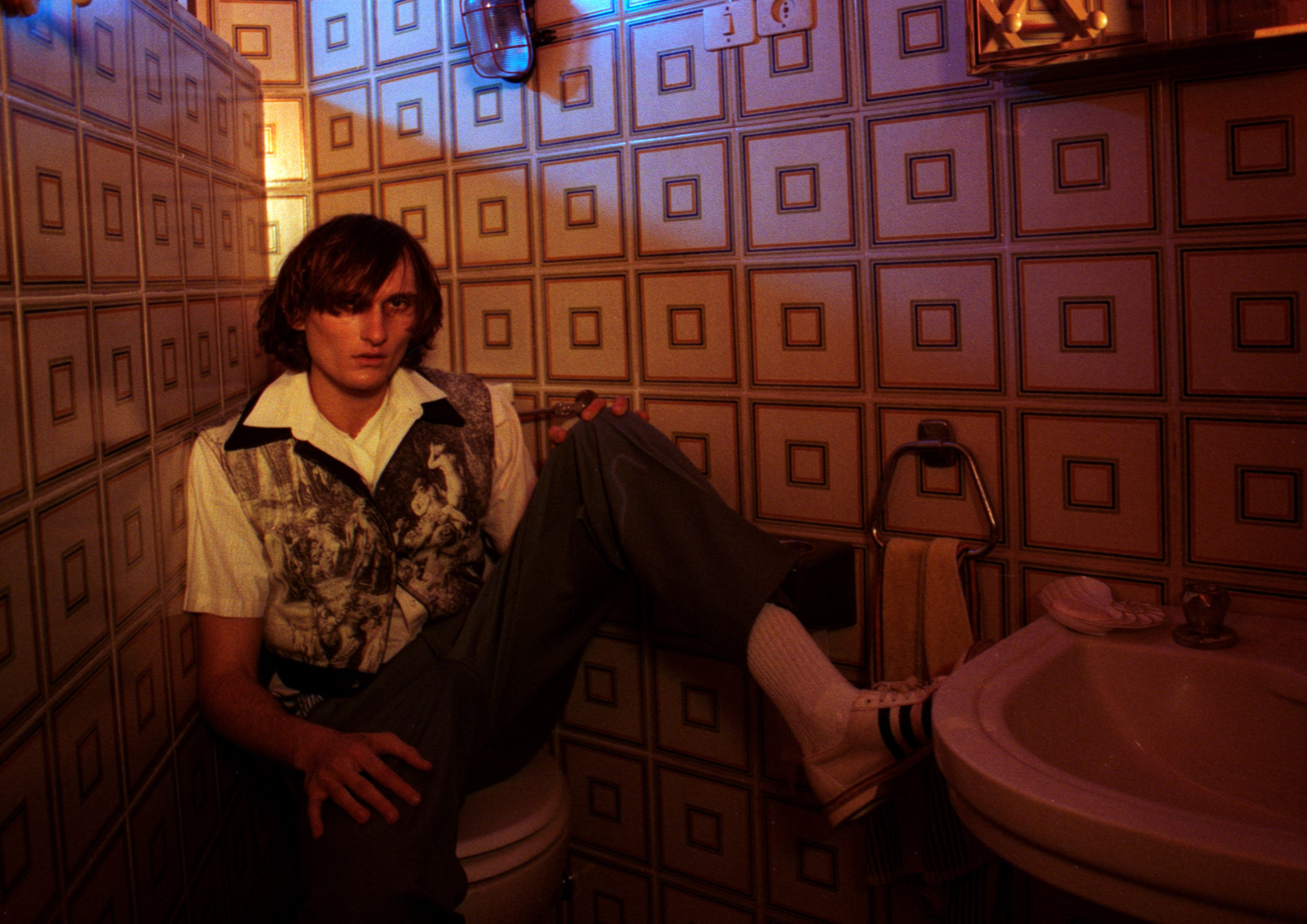 Shirt STYLIST OWN, jacket ROBERTO CAVALLI, pants JUNSE LIU, socks STYLIST OWN, shoes CONTESSA MISERIA ARCHIVE