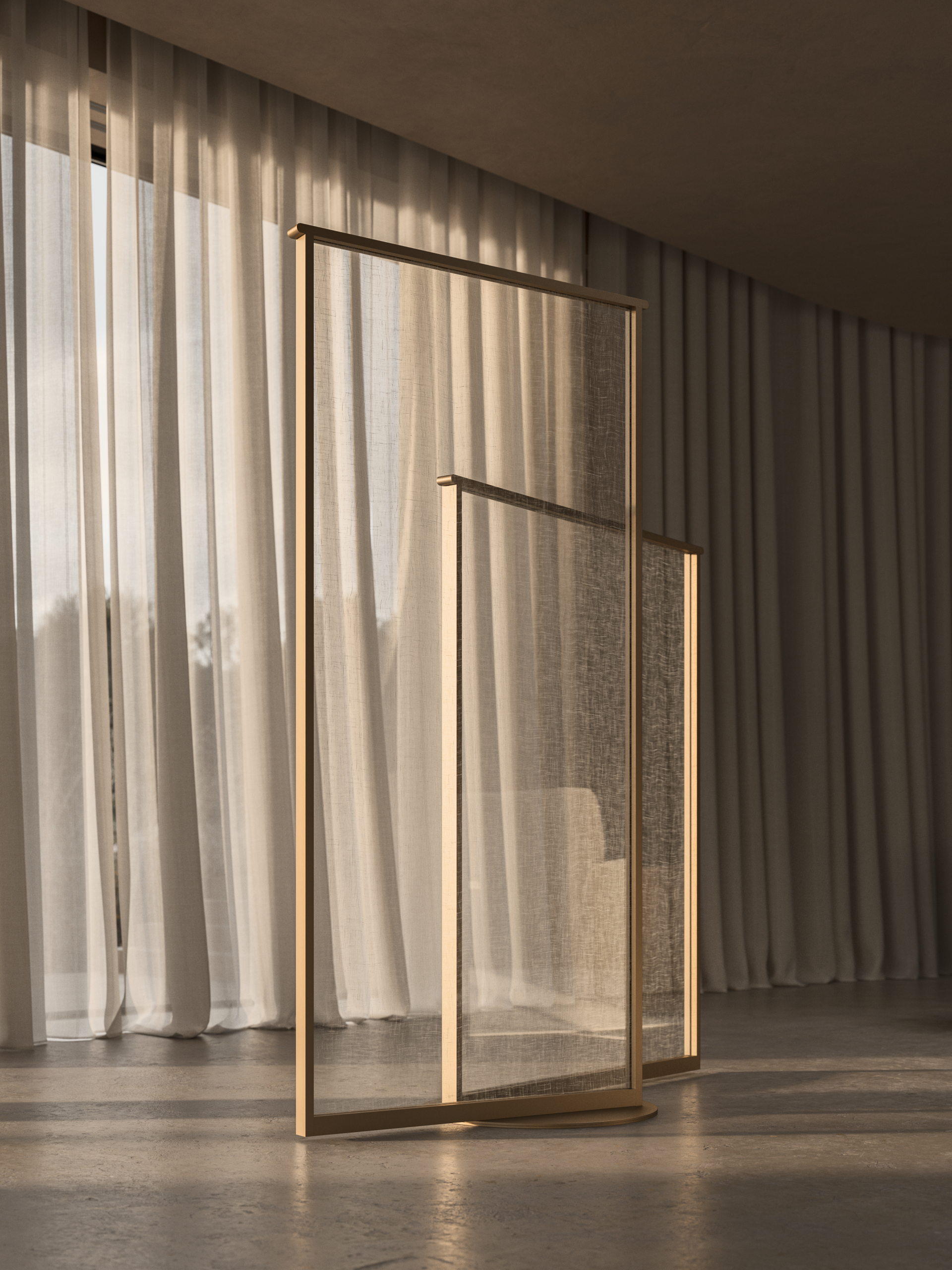 Conceived as a flexible architectural element rather than a divider, Aria is the first screen system developed by ADL. The collaboration reflects a shared approach to product design, one that began with how objects frame space, guide movement, and shape atmosphere. Composed of metal and glass, the design brings together two panels in varying sizes to form a single system that balances solidity with transparency. Proportion, height, rhythm, and distance inform the calibration of the panels, creating a sense of ease. Designed to respond to varying spatial and contextual needs, the Aria screen defines areas without enclosure, allowing air and light to flow freely.