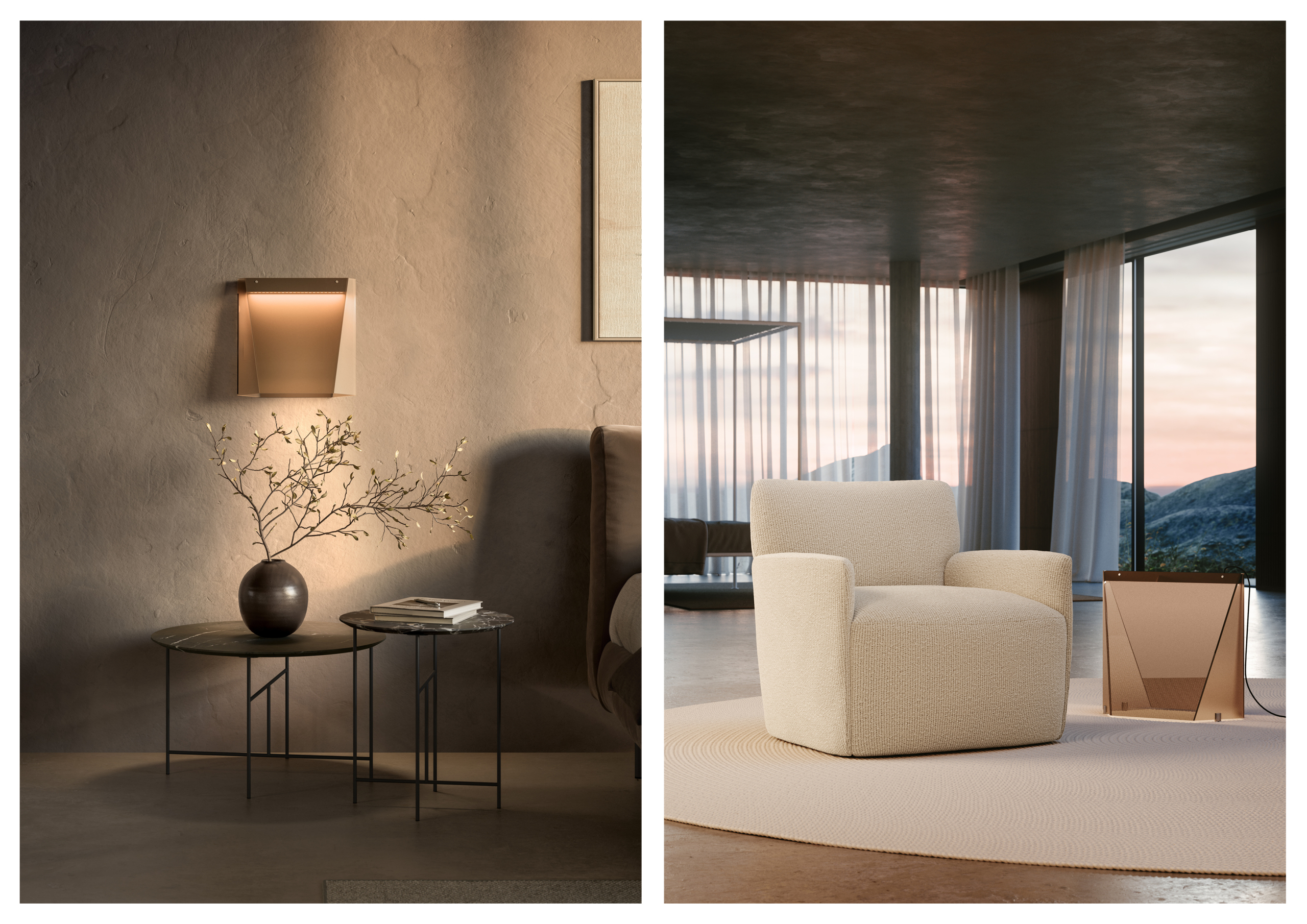 De Padova’s disciplined modernism aligns naturally with the studio’s approach to design, where proportion, material, and restraint guide lived-in spaces. The Daiya lamp is defined by six glass panels forming a prismatic shape. Sharply resolved edges conceal the light source along the upper plane, allowing illumination to refract through the corners. Building on an ongoing collaboration with De Padova, the piece is offered in multiple configurations, scaling from table to wall and adapting from intimate residential to hospitality settings.